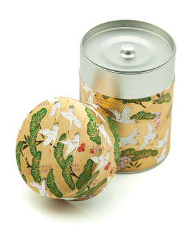 Superbe boîte à thé en fer blanc recouverte manuellement de papier Japonais (Washi), modèle Maze.