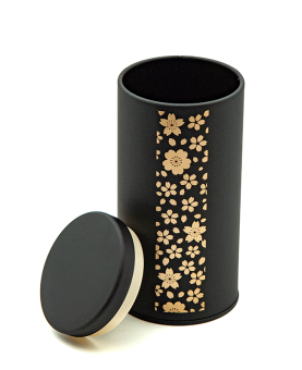 Magnifique boîte à thé en métal laqué noir mat parfaitement hermétique au motif Sakura (fleur de cerisier en japonais) d'une capacité de 100 à 200g selon le thé ou la plante que vous souhaitez conserver !