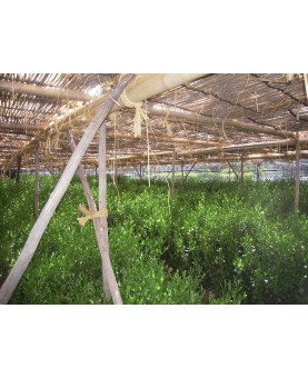 Tencha* Le Tencha est un thé "brut", à partir duquel on va fabriquer le Matcha. il est obtenu en plantation couverte comme le gyokuro, ses plants étant protégés su soleil à partir du moment ou deux ou trois feuilles sont sorties. Mais il est laissé plus longtemps que le Gyokuro. C’est donc un thé riche en théanine*. Comme les feuilles de gyokuro, après la cueillette les feuilles de tencha sont chauffées environ 20 secondes pour stopper le processus d’oxydation, puis séchées et refroidies sous l'effet d'une soufflerie. Ensuite, elles passent dans un four, où elles subissent un séchage sur des tapis roulants, d’abord à 200°C puis en descendant par paliers jusquà 80°C. Un dernier séchage à 60°C permet de ne plus laisser qu’environ 5% d’humidité dans les feuilles. Les parties tendres sont ensuite séparées des tiges et autres résidus. Le tencha est séché sans être roulé, contrairement aux autres thés verts. Au final, il présente un mélange de feuilles brisées vert sombre et clair, de formes irrégulières, comme de légers flocons, accompagnés de poussières. Sa liqueur est d’un jaune tirant vers le vert, pâle mais assez trouble. Il est rarement bu tel quel, étant destiné à être pulvérisé pour donner le matcha. Par contre, puisqu’il s’agit d’un thé de qualité produit de manière quasi-identique au gyokuro, il est agréable à manger. Sa douceur sans arrière-goût en fait un ingrédient très intéressant pour la cuisine.