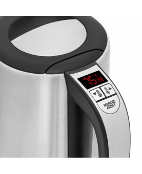 Température sélectionnable de 50 à 100°C par paliers de 5°C avec Maintien au chaud automatique 30 minutes, fonction Accès direct 60, 80 et 100°C, mémorisation de la dernière température sélectionnée... Polyvalente, elle plébiscite un large choix de préparations : thés (verts, blancs, noirs, oolongs, parfumés...), infusions, cafés et autres boissons chaudes instantanées, sauces et soupes déshydratées... Son écran digital permet de visualiser en temps réel l’évolution de la température et d'afficher la température réelle de l’eau dès 30°C. Avec son bouton de commande rétro-éclairé situé au niveau de la poignée et le signal sonore dès l’obtention de la température désirée, le confort d’utilisation est maximal