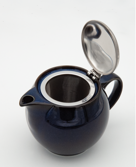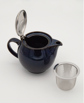 Théière en céramique fabriquée au Japon : Filtre et couvercle en inox, capacité de 45cl de couleur bleu jean